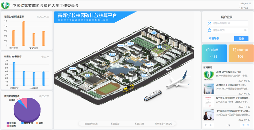 随后,谭洪卫教授就“近零碳目标下校园相关政策、标准及技术”进行了主题演讲,为校园实现碳中和目标提供了政策和技术层面的指导。谭教授结合绿色大学工作委员会近几年推动数十所高校共同签署发布的《中国高等学校校园碳中和行动宣言》、主编的中国建筑节能协会标准《高等学校校园碳排放核算指南》等工作,对高校碳排放现状、碳中和实施路径、当前存在的问题误区以及工作方向进行了阐述。谭教授在解读高校碳核算方法的基础上,对领衔开发的“高等学校校园碳排放核算平台”进行了简要介绍,该平台配合新发布的《高等学校校园碳排放核算指南》的实施向全国高校开放免费服务,将参照“指南”提供标准的数据录入模板下载、数据上传并自动生成碳核算报告,为高校开展校园碳核算,摸清碳排放家底,制订科学的碳达峰规划和碳中和路径提供支撑。欢迎全国高校使用。随后,谭教授对正在编制的《近零碳校园评价标准》的背景、思路、框架进行了介绍,欢迎更多单位参与到标准工作中,共同推动我国的近零碳校园评价工作,发挥以评促建、以评促改、以评促管的效果。